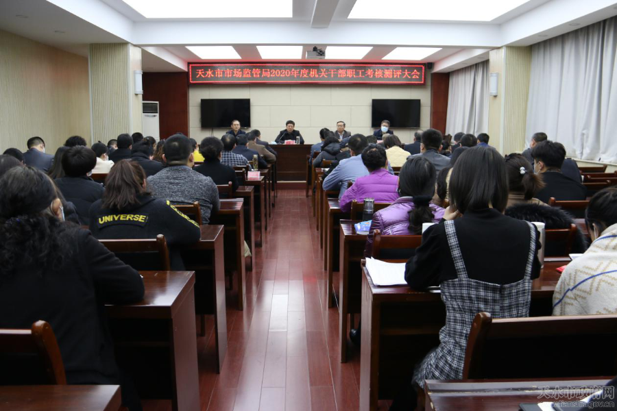 近日,市市场监管局召开2020年度机关干部职工考核测评大会。党组书记、局长王宏玮参加会议并讲话,党组成员、副局长贾文斌主持会议,局领导班子成员及机关全体干部职工参加会议。
