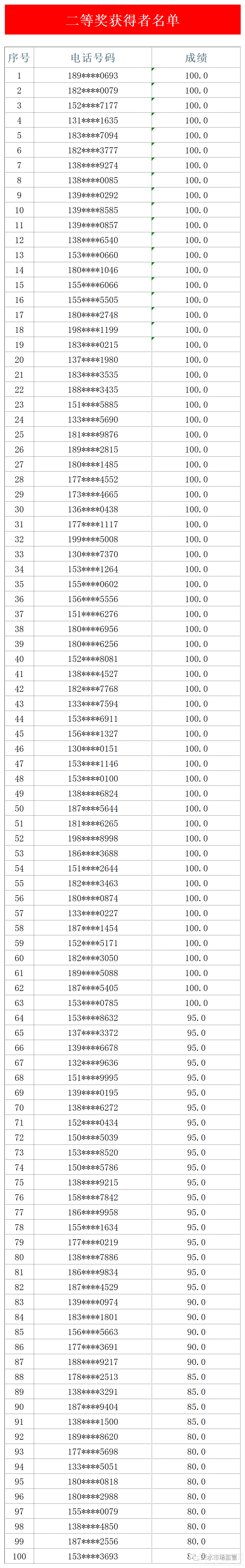 抽奖过程坚持公开、公平、公正的原则,采用第三方平台电脑端抽取方式,现场随机抽取了一等奖20名,奖励话费100元;二等奖100名,奖励话费50元;三等奖200名,奖励话费30元。奖励话费将在近日内充值到中奖手机号码账户中,请注意查收。
