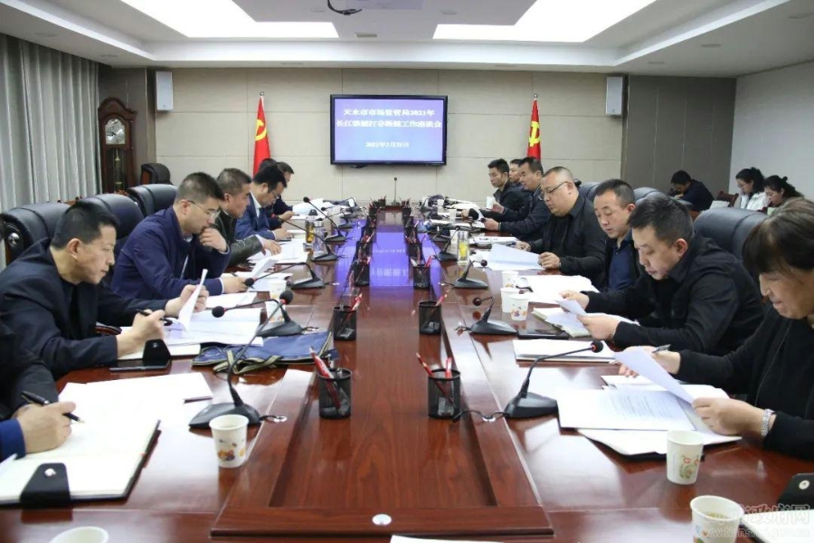 3月31日上午,天水市市场监督管理局召开2021年长江禁捕打非断链工作座谈会,深入贯彻落实省、市关于长江禁捕打非断链工作的安排部署,全面安排部署2021年重点工作任务。市局党组成员聂惠仁出席会议并讲话,市市场监管综合行政执法队队长梁玉保主持会议。市局相关科室负责人,执法队分管领导、相关科组负责人,秦州、麦积两区市场监管局分管领导、相关业务股室及相关市场监管所负责人参加会议。