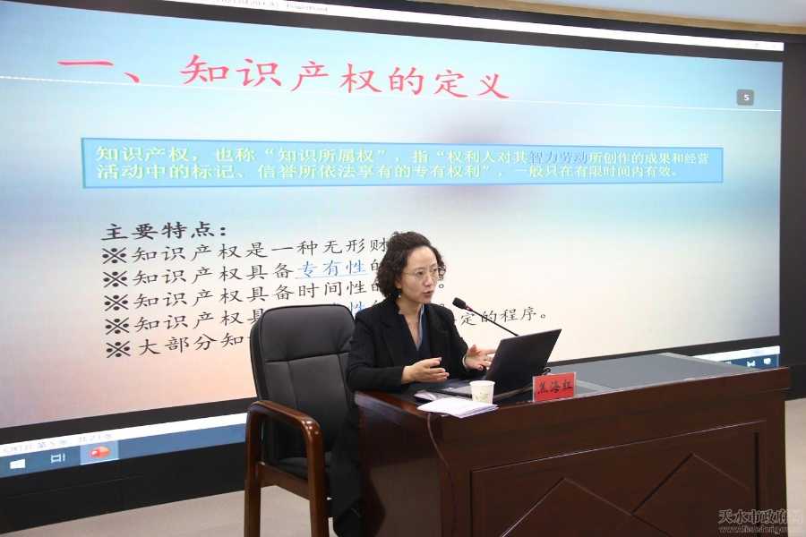 讲座邀请兰州泽一知识产权代理有限公司知识产权部部长、高级工程师焦海红做了题为《现代企业知识产权保护》的讲座。讲座从知识产权概念、为什么要保护知识产权、企业如何保护自己的知识产权以及知识产权维权途径等方面系统讲解了知识产权专业知识,加深了参会人员对知识产权保护意义的理解。天水海关综合业务科四级主办葛晓玲就“海关知识产权保护政策解读”做了讲座,详细介绍了海关保护知识产权的范围、功能,知识产权备案等专业知识,增进企业负责人对涉及进出口的知识产权保护的认知程度。同时,为增强宣传效果,还现场向参会企业发放了《中华人民共和国商标法》《中华人民共和国专利法》等宣传资料。