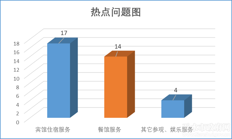 消费者反映问题排名前3位的依次为宾馆住宿服务17件、餐馆服务14件,其它参观、娱乐服务4件,分别占13.71%、11.29%、3.23%。