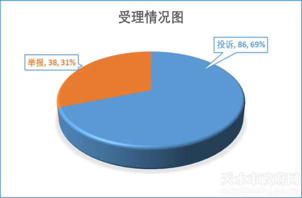 2021年“五一”期间(5月1日--5月5日),市市场监督管理局通过“全国12315平台”“天水市12345政务服务平台”和本级来访来电受理消费者反映问题124件,其中投诉86件、举报38件。