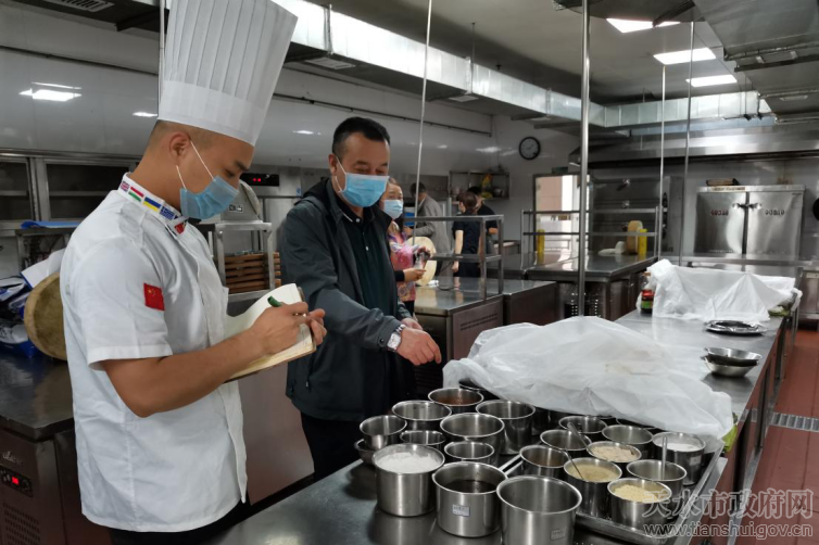 督查组先后深入多家节会定点接待单位,通过现场检查、查阅资料、听取汇报等形式,对食品安全主体责任落实、人员健康、进货查验、食材储存、加工流程、加工场所环境卫生、餐饮具清洗消毒及“互联网+明厨亮灶”实施、文明餐桌行动开展等情况进行全方位检查。对检查发现的定点接待酒店在设施设备维护、加工过程控制、餐饮具清洗消毒等环节存在的问题提出了整改意见,要求酒店限期整改到位,切实落实企业主体责任,确保公祭伏羲大典期间来宾饮食安全。