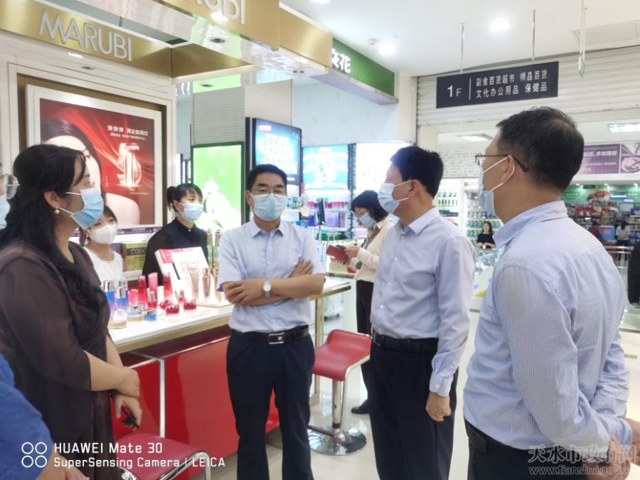 9月8日,省药监局党组成员、副局长王宗伟,化妆品监督管理处处长张俊华一行,对天水市化妆品监管工作开展了督导调研,天水市市场监管局党组书记、局长王宏玮,党组成员、副局长安和平等一同调研。