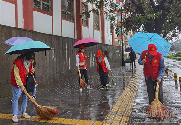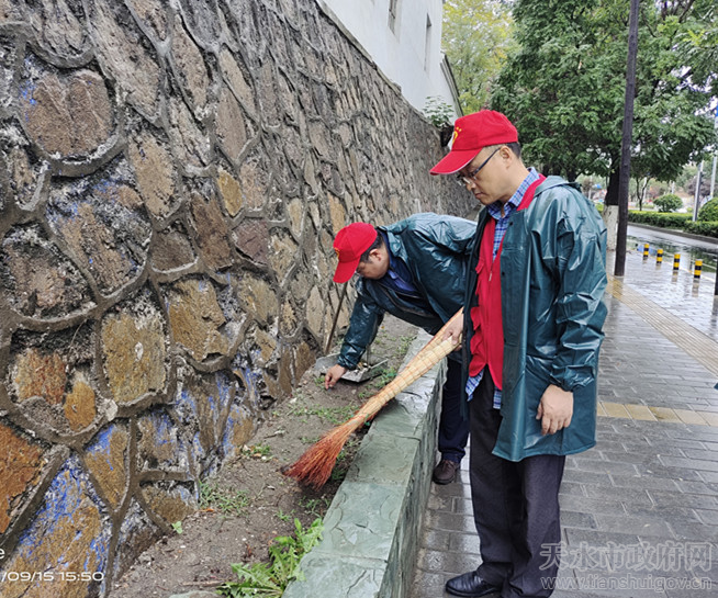 为助推我市“全国文明城市”创建工作,着力改善市容市貌,提升市民文明素质,确保创建指标任务高效高质完成。9月15日,在市市场监管局统一安排下,市药检中心主任鲁安明带领10名志愿服务人员按照全市创建文明城市“卫生好、秩序好、设施好、市容好、宣传好、文明程度指数高”的“五好一高”标准要求,冒着大雨在“包街”路段开展志愿服务,清理卫生死角、整理乱放杂物、美化道路环境。