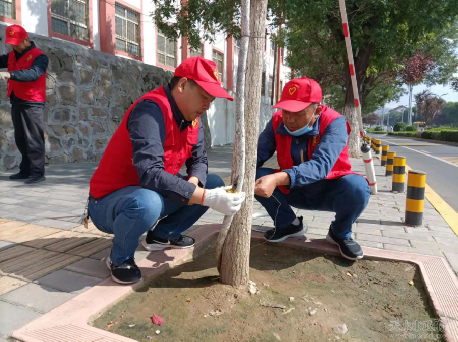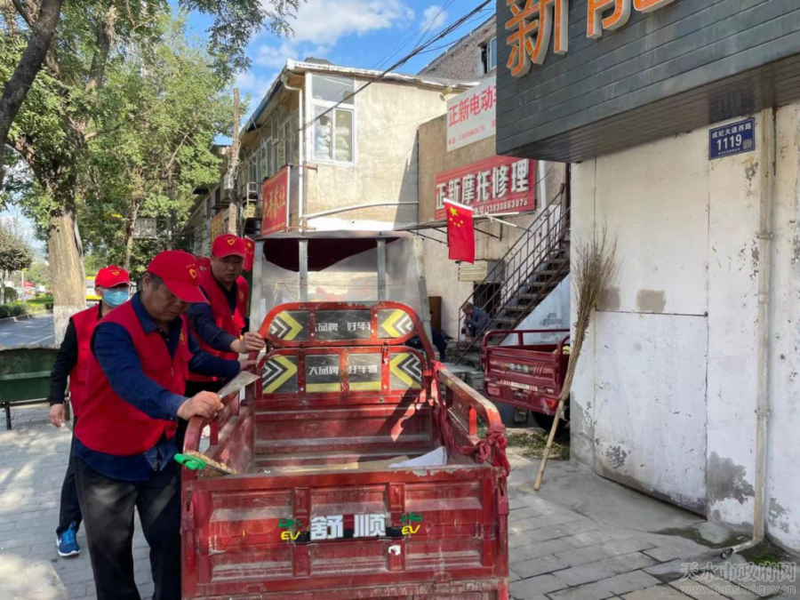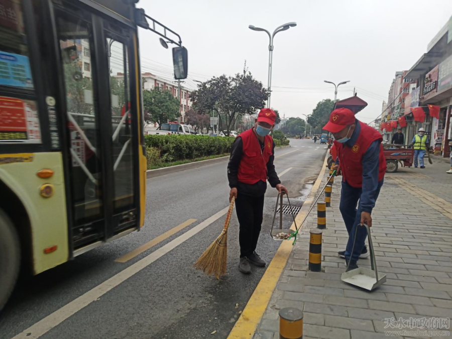 在“包街”责任路段,志愿服务队员对分包路段的环境卫生细化责任,分工到人,以保持道路、人行道卫生整洁,确保无纸屑、果皮、烟头、塑料袋等垃圾污物,保持墙壁及公共设施外观整洁,对道路两侧乱贴乱挂行为及占道经营现象进行了劝导和全面整治;为保持沿街商铺有序文明经营,市计量所专业技术人员对沿街在用计量器具规范使用进行了现场指导,同时按照“门前四包”责任,对沿街商铺、门店开展宣传教育,对于还未签订《商店门店门前四包管理责任书》的商铺,志愿服务队员及时指出问题,督促其尽快与社区签订责任书,并按要求悬挂“天水市秦州区门前四包责任牌”,落实“门前四包”责任。志愿服务人员还向沿街商户宣传讲解了《致秦州、麦积城区沿街商户创建全国文明城市倡议书》。