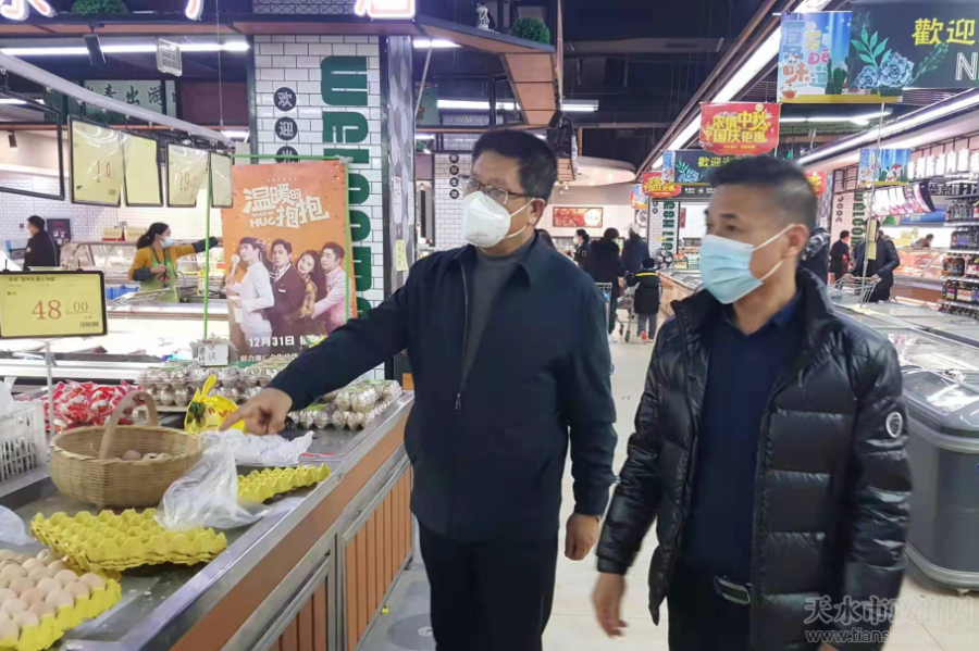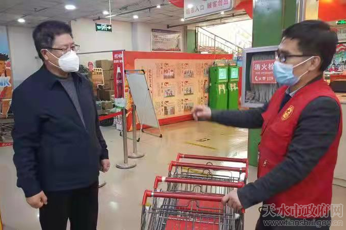 督查组先后深入秦州区朝东超市、天水物禾美连锁超市、森美购物广场、兰天超市广场店、嘉佰乐超市等地,重点就商场超市疫情防控措施落实、群众生活物资供应、明码标价及索证索票等主体责任落实情况进行了暗访,与超市负责人交谈了解相关情况,对存在的问题向超市负责人和辖区监管单位进行了交办。