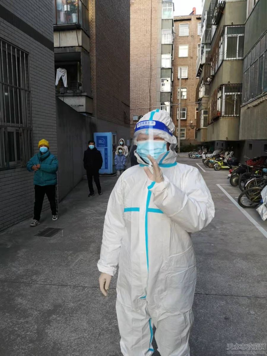在麦积区疫情严峻的时候,她又积极响应组织号召,主动报名下沉社区参与疫情防控,作为第二批志愿者参加社区抗疫志愿服务。她参与志愿服务的北道埠街道渭滨社区离家较远,每天天一亮,她就骑着借来得电动自行车到社区报到。先后参与了渭滨社区东北大院、二院家属院和焦化家园核酸检测点的志愿服务。她耐心劝导群众遵守检测规定,对年龄大行动不便的老人、小孩给予力所能及的帮助,认真维持检测点秩序,对检测点内外进行消毒,协助检测点医务人员做好数据统计和送检工作,一天下来,嗓子哑了,腿也站麻了,从来不见她抱怨。