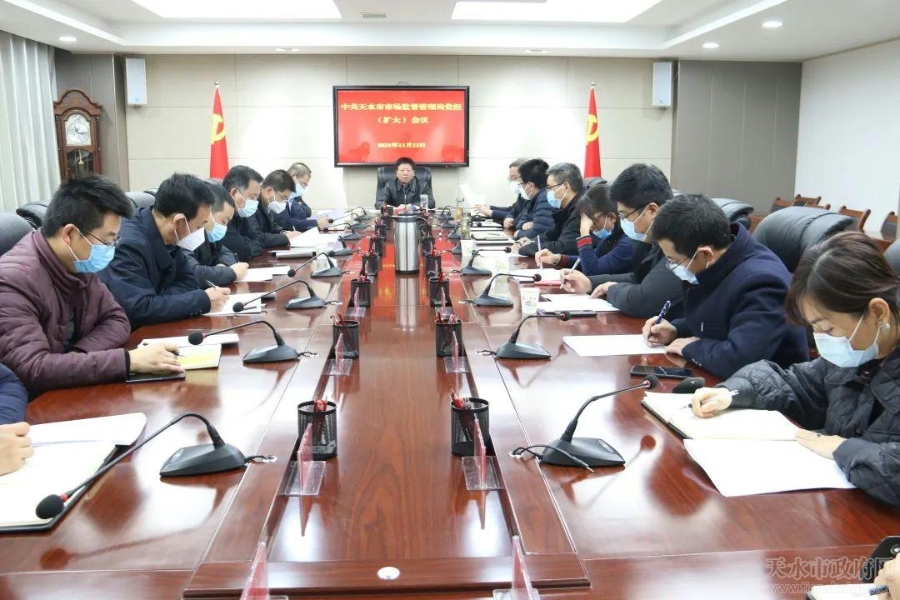 11月13日,天水市市场监管局召开党组(扩大)会议,专题传达学习党的十九届六中全会精神。党组书记、局长王宏玮主持会议并讲话,局领导班子成员、各直属单位及机关有关科室负责人参加会议。
