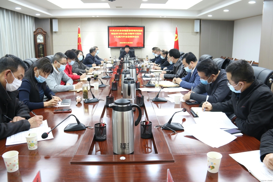 会议要求,市局机关和各直属单位要高度重视,把深入学习领会党的十九届六中全会精神作为当前和今后一个时期的重要政治任务,及时传达学习,全面抓好学习、抓好教育培训、抓好宣传引导,在市局系统迅速营造学习党的十九届六中全会精神的浓厚氛围。一要提高政治站位,充分认识十九届六中全会的重大意义。要深刻领会习近平总书记重要讲话的精神实质,不断增强学习宣传贯彻落实的思想自觉、政治自觉和行动自觉,切实把思想认识、工作措施、行动方向统一到十九届六中全会精神上来。二要深入学习领会,准确把握党的十九届六中全会主要精神。要坚持原原本本学、全面系统学,深入领会精神实质,准确把握核心要义,切实做到学深悟透、融会贯通,深入理解党百年奋斗的重大意义和历史经验,深刻领会党百年奋斗的初心使命和重大成就,准确把握以史为鉴、开创未来的重要要求。三要周密安排部署,迅速掀起学习宣传贯彻全会精神热潮。全市市场监管系统要迅速行动起来,结合党史学习教育、主题党日、三会一课等,多形式、多层次开展全会精神的学习、宣传、感悟、交流,全面加深理解、把握精神实质,坚决贯彻落实十九届六中全会精神。四要紧密联系实际,切实运用十九届六中全会精神推动工作。要把学习贯彻全会精神与统筹做好当前市场监管各项工作结合起来,统筹抓好疫情防控和经济社会发展,准确把握市场监管职责定位,不断推进商事制度改革,着力推动监管创新,持续激发市场主体活力,同时要全面检视2021年工作任务完成情况,查漏补缺、主动作为,切实将全市市场监管工作向纵深推进。