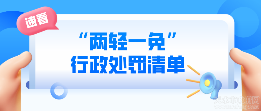 ——天水市发布市场监管领域 “两轻一免”行政处罚清单