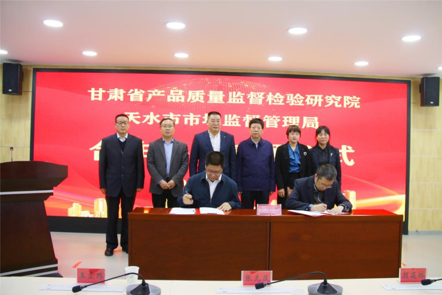 4月28日,甘肃省产品质量监督检验研究院天水分院揭牌仪式在天水市市场监管局举行。天水市市场监管局党组书记、局长王宏玮,甘肃省产品质量监督检验研究院党委书记、院长张先茂共同为“甘肃省产品质量监督检验研究院天水分院”牌匾揭牌。省质检院副院长颜庭林与市局党组成员王俊峰签订技术服务合作备忘录。