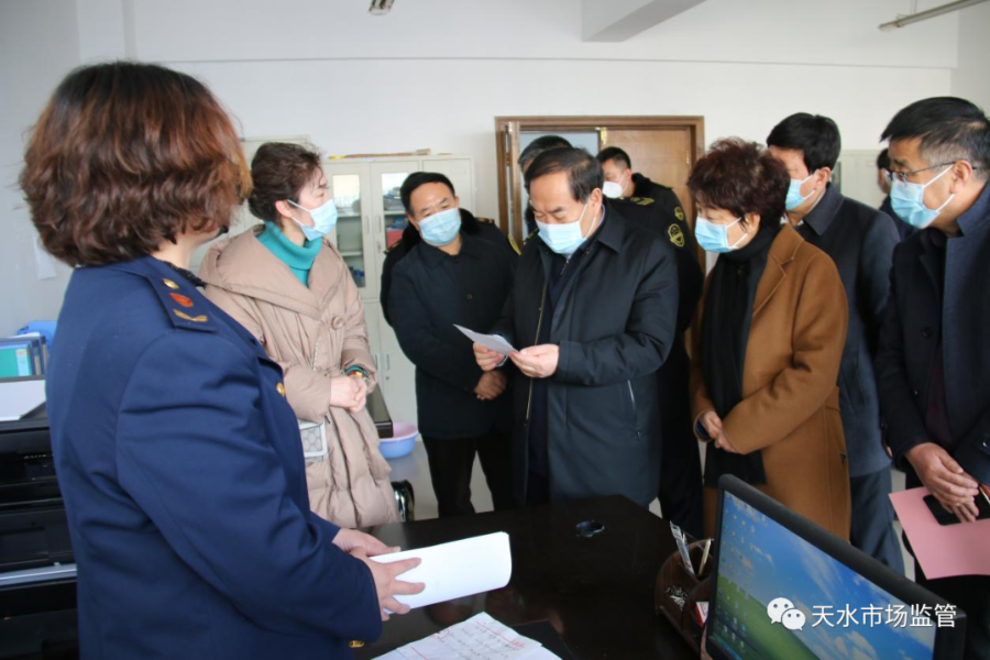 1月14日,甘肃省市场监管局党组书记、局长王忠习对天水市场监管工作进行了调研指导。天水市副市长汪小娟及市市场监管局党组书记、局长王宏玮,党组成员、副局长安和平一同调研。