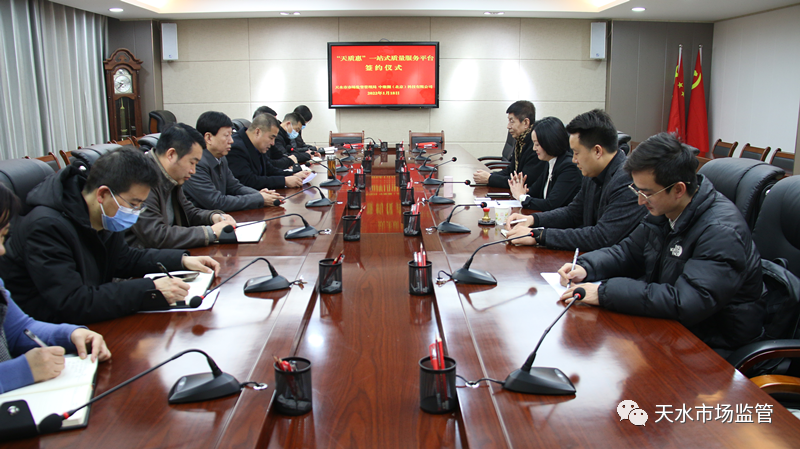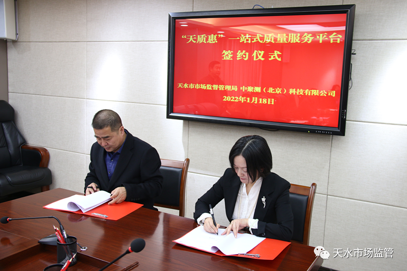1月18日上午,天水市市场监督管理局与中聚测(北京)科技有限公司(以下简称“中聚测”)正式签署合作协议,就着力打造“天质惠”一站式质量服务平台达成共识,双方计划通过加强政企合作,充分挖掘质量服务潜力,为全市经济高质量发展赋能升级。市局党组书记、局长王宏玮出席签约仪式并讲话,党组成员聂惠仁主持签约仪式。