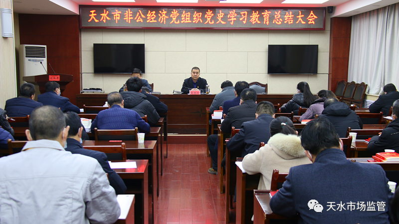 1月20日,天水市非公党委召开党史学习教育总结大会。传达学习中央和省、市委党史学习教育总结大会精神,全面回顾总结全市非公经济党组织党史学习教育工作,对下一步巩固拓展党史学习教育成果进行了安排部署。市非公党委书记、市市场监管局党组成员聂惠仁主持会议并作总结讲话,市属非公经济组织党委、独立党总支、党支部支部书记和党办主任,共40余人参加会议。