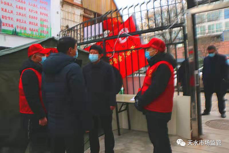 小区是新冠疫情防控的第一防线。春节期间,市市场监管局深入贯彻落实市委、市政府疫情防控工作部署要求,以“一失万无”的底线思维和“万无一失”的责任担当,持续做好绿色市场社区润苑小区和西站社区花鸟市场小区疫情防控值班值守工作。志愿者们不畏严寒、日夜坚守,充分发扬“不怕苦不怕累”的精神,以实际行动践行初心使命和责任担当,不断织密筑牢疫情防控防线,切实保障小区居民的身体健康及安全,让党旗在社区高高飘扬。