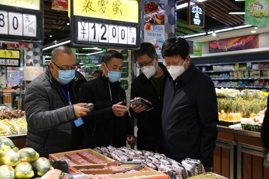 王宏玮一行先后深入秦州区溢香园茶餐厅、瀛池果蔬批发市场、嘉佰乐超市、秦州区志远冷链食品经销部、德生堂药店伏羲庙店等地,重点就各类市场主体扫码测温、从业人员核酸检测等疫情防控措施落实以及防疫物资和米面油、肉蛋奶、蔬菜水果等生活必需品的价格和供应,冷链食品、“四类药品”实名登记管理等情况进行了实地督查指导。