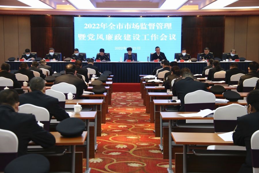 副市长汪小娟出席会议并讲话,市政府副秘书长冯荣主持会议,市市场监管局党组书记、局长王宏玮作题为《踔厉奋发开新局 勇毅前行创佳绩 奋力谱写市场监管事业高质量发展新篇章》的工作报告。市市场监管局领导班子成员,四级以上调研员,各县区市场监管局局长,市局机关各科室科长、副科长,各直属事业单位领导班子成员,市市场监管综合行政执法队班子成员及各组组长、副组长,共计90余人参加会议。