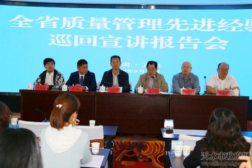 为贯彻落实国家市场监管总局等14部门联合印发的《关于开展2019年全国“质量月”活动的通知》精神,切实在全社会和广大企业中营造“共创中国质量、建设质量强国”的良好氛围,9月25日,全省质量管理先进经验巡回宣讲报告团第三宣讲团走进天水,在华天电子宾馆9楼会议室开展巡回宣讲报告活动。第三宣讲团团长、省市场监督管理局市场稽查专员王立明主持会议,天水市市场监督管理局副局长贾禄国出席会议,全市产品、工程、服务和环境等四大行业企业代表共300人聆听了报告会。