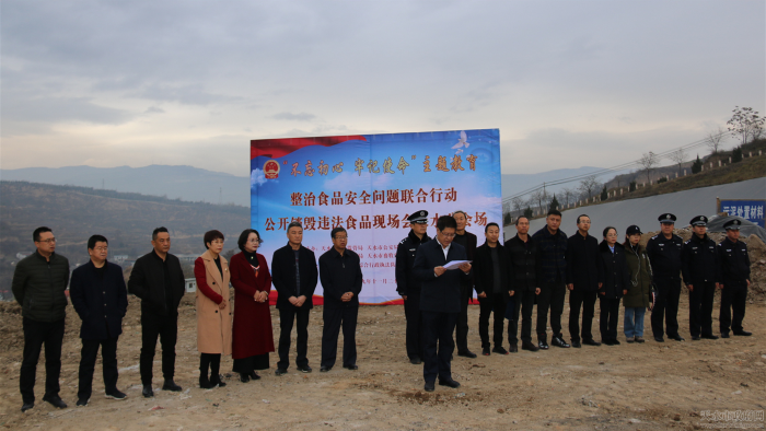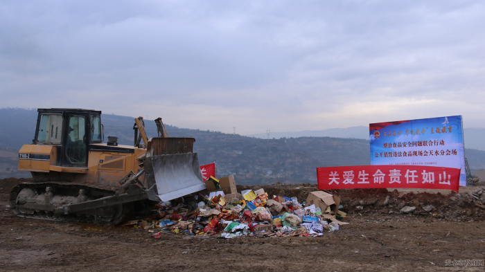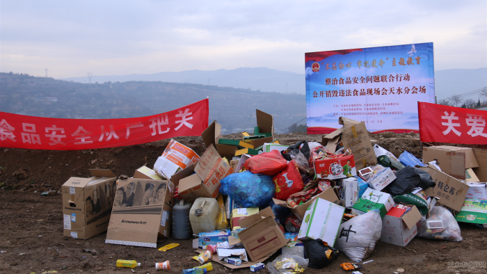 根据《甘肃省市场监管局甘肃省公安厅甘肃省教育厅甘肃省农业农村厅关于在“不忘初心、牢记使命”主题教育中开展整治食品安全问题联合行动的通知》精神,为切实落实中央纪委、国家监委关于形成“可检验,可评判、可感知”成果的要求,全面展示联合行动整治成效,形成打击食品安全违法犯罪行为高压态势。11月20日,市市场监管局在七里墩水家沟垃圾处理场召开整治食品安全问题联合行动公开销毁违法食品现场会,参加会议的有市纪委监委第六纪检组有关领导、市政协委员代表,天水市和秦州区两级公安、教育、农业农村和畜牧兽医部门的有关领导,两级市场监管部门相关科(股)室负责人共约40余人。