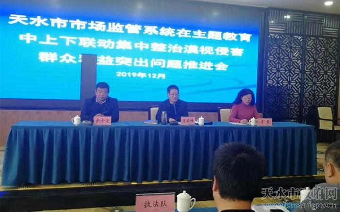 12月6日,天水市市场监管局组织召开市场监管系统上下联动集中整治漠视侵害群众利益突出问题推进会。市局党组成员、副局长王俊峰,副调研员李箭及市市场监管综合行政执法队队长余金龙出席会议。各县区市场监管局分管领导及食品监管人员,市市场监管综合行政执法队食品执法人员参加会议。