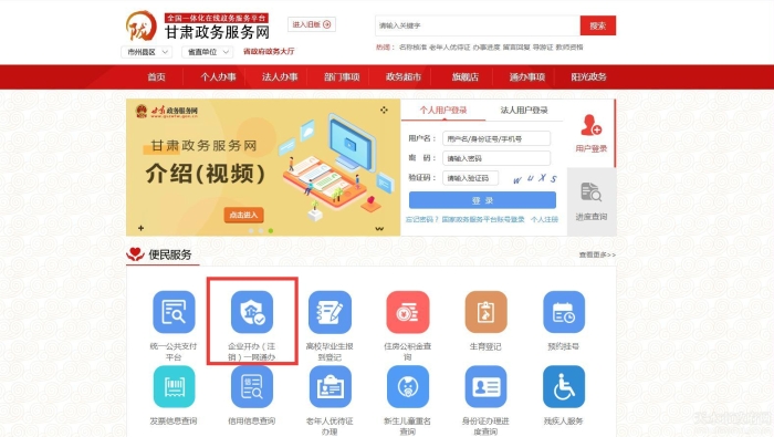 今后企业开办(注销),申请人只需进入甘肃省政务服务网在便民服务栏目下点击“企业开办(注销)一网通办”模块并登录。登录后填写一份申请,提交一次材料,仅需3个工作日就能完成企业从营业执照申请办理、公章刻制备案、税务发票申领、用工参保登记及银行账户开办的全流程网上服务。