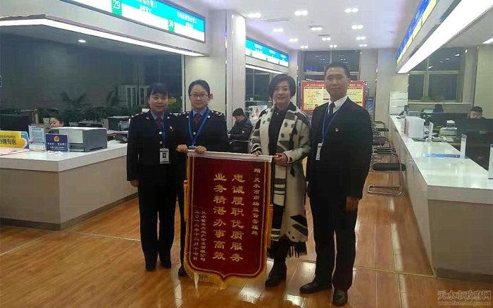 近日,天水某企业办事人员到政务大厅市场监管局窗口办理相关登记注册业务,因该企业股东身在外地,窗口工作人员在了解企业的实际困难后,市局相关科室对有关情况迅速进行了研究,决定对该企业进行“一对一”帮扶指导和全程跟踪服务。窗口工作人员在合法合规的情况下,将该项业务在最快的时间里进行了办理。事后,该公司将印有“忠诚履职、高效服务、业务精湛、办事高效”的锦旗送到市场监管局政务大厅窗口,对窗口工作人员服务群众、为民解忧办实事表示衷心感谢。