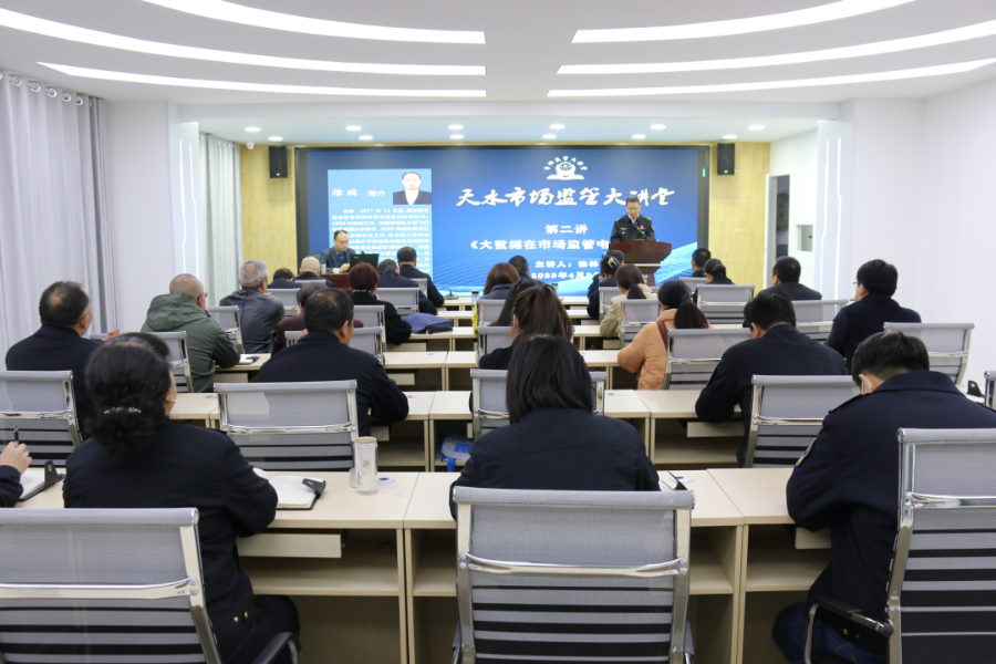 为进一步提高全市市场监管队伍整体素质和监管水平,不断适应新时期市场监管工作需要,4月3日,天水市市场监管局2023年第二讲“市场监管大讲堂”如期开讲。此次讲座邀请省市场监管局科技信息处副处长徐林同志为全市系统作了题为《基于市场监管大数据分析的智慧监管应用》的知识讲座。市市场监督管理局党组成员、副局长安和平主持讲座,市局机关、各直属单位、各县区市场监管局及开发区分局共1000余名干部职工分别在主分会场聆听讲座。