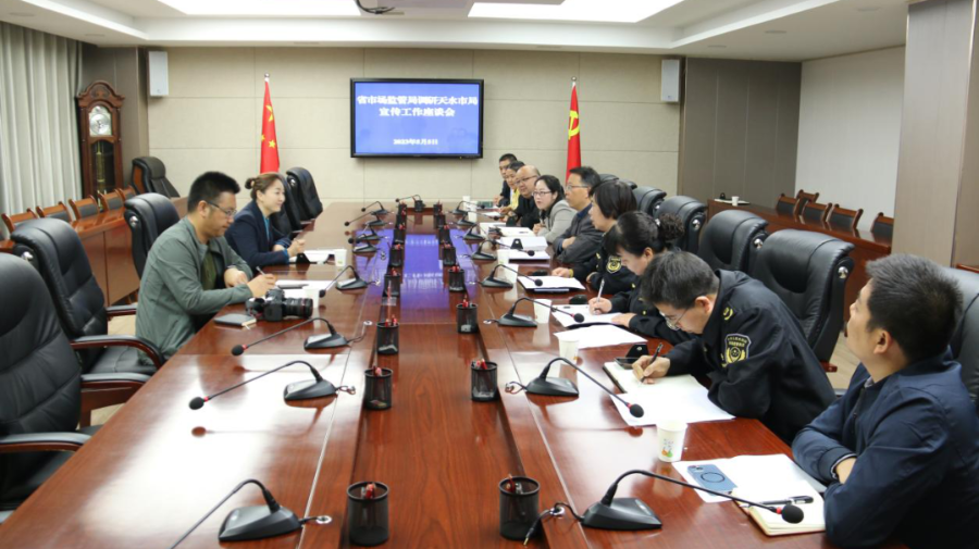 调研组先后深入天水市局机关,秦安县局机关、食品药品检验检测中心、兴国镇市场监管所,甘谷县局机关、大像山镇市场监管所等地,通过听取汇报、座谈交流、观看专题片等形式,全面了解天水市场监管系统在新闻宣传方面的主要做法及成效、新媒体建设运行、通讯员队伍作用发挥以及“三抓三促”行动中的亮点工作,并就新闻采写、网络舆情处置、通讯员队伍建设及如何形成工作合力,全面扩大市场监管新闻宣传影响力,宣传工作中存在的困难和问题等与相关人员进行了座谈交流。