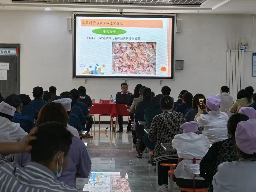 此次培训以《餐饮服务食品安全操作规范》为主要内容,就场地设置、人员管理、原材料管理、加工制作过程控制、供餐配餐管理以及检验检测等方面进行了深入浅出的讲解。
