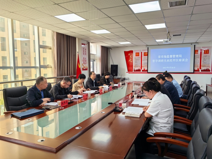 5月16日,省市场监督管理局专员石红、知识产权处二级主任科员陈雷一行对天水经开区国家知识产权强国建设试点园区建设、省列知识产权计划项目实施、天水市知识产权示范优势企业培育等重点工作推进情况进行督导调研。市局党组成员、副局长安和平陪同调研。