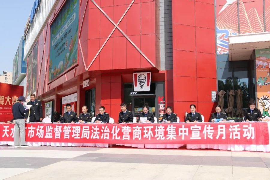 为不断提升全社会对营商环境法律法规的知晓率和认知度,推动法治化营商环境建设,近日,天水市市场监管局在秦州万达广场开展了法治化营商环境集中宣传月活动。
