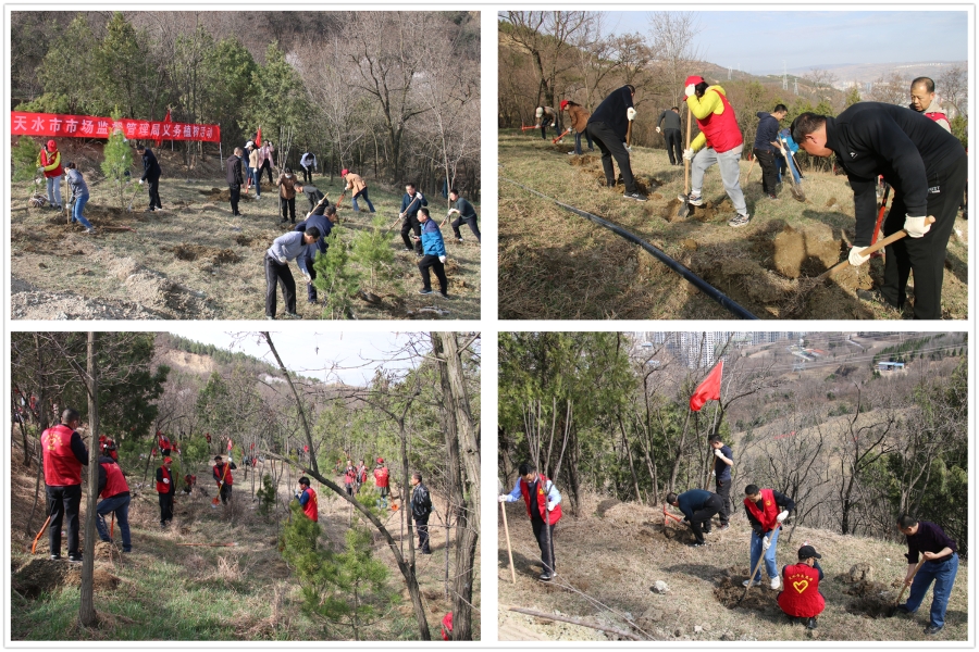 3月28日,天水市市场监管局组织机关及直属单位140余名干部职工到秦州区东团庄梁家坪村植树点开展春季义务植树,以实际行动投身全国文明城市创建。