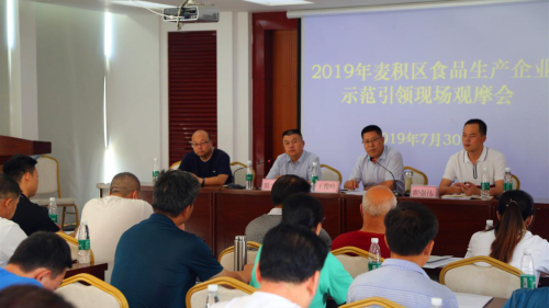 7月30日,天水市市场监管局在麦积区召开食品生产企业示范引领现场观摩会,市、区市场监管局分管领导、食品生产监管人员,麦积区获证食品生产企业负责人共70余人参加会议。