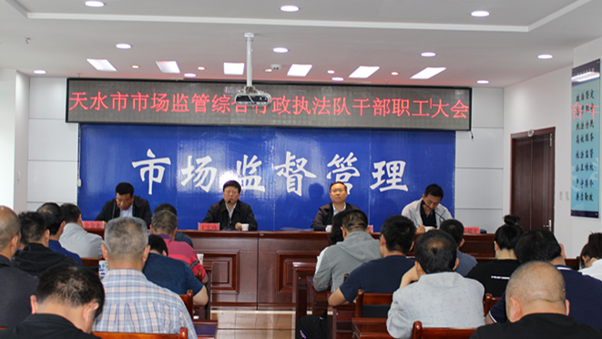 6月11日,天水市市场监管综合行政执法队召开干部职工大会,宣布主要领导调整的决定,余金龙同志任市市场监管综合行政执法队队长,黎映广同志不再担任市市场监管综合行政执法队队长职务。市市场监管局党组书记、局长王宏玮出席会议并讲话,市市场监管局副局长贾文斌主持会议。