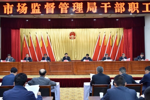 4月22日,天水市市场监督管理局召开干部职工大会。会议对市局“三定方案”作了说明,宣布了市局领导班子分工和机关科级干部任职文件以及科室组成人员名单,并就人员到岗、工作移交等事项提出具体要求。市局领导班子,调研员,副调研员,局机关全体干部职工,各直属单位负责人共140余人参加会议。党组书记、局长王宏玮作会议讲话,党组成员、副局长马兆让主持会议。