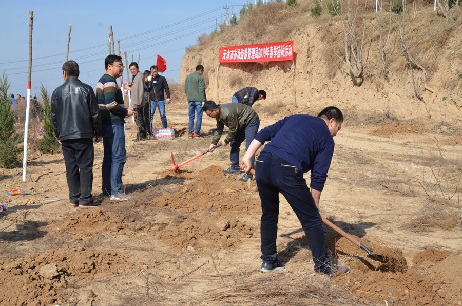 春风催新绿,植树正当时。3月26日,天水市市场监管局组织机关及直属单位110余名干部职工到秦州区玉泉镇王家磨村北山植树点开展春季义务植树活动,以实际行动诠释“绿水青山就是金山银山”的理念。