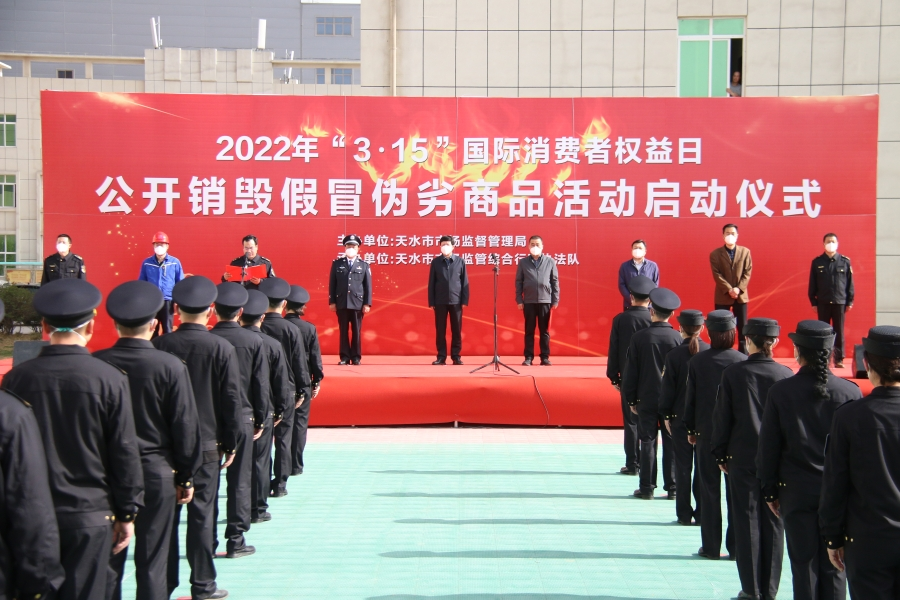 3月15日,由天水市市场监管局主办,天水市市场监管综合行政执法队承办的2022年“3·15国际消费者权益日”公开销毁假冒伪劣商品活动,在天水市社棠工业园区中节能生活垃圾处理厂举行。