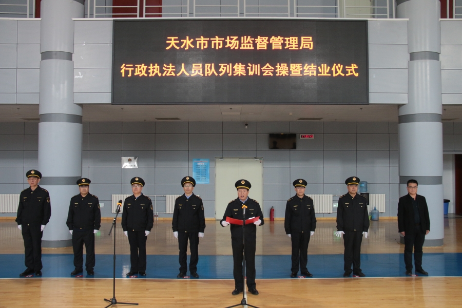 在全党深入学习贯彻党的二十大精神之际,为进一步巩固提高市场监管队伍规范化建设水平,有效提升执法人员个人素质和队伍形象,着力打造一支能吃苦、能战斗、适应新时代发展要求的市场监管铁军,10月25日至28日,天水市市场监管局组织局机关和市市场监管综合行政执法队180名执法人员分两批在天水市体育中心开展了为期4天的封闭式队列集训。市局党组书记、局长王宏玮出席集训动员会及会操结业仪式并讲话。全体局领导班子成员全程参加集训活动。