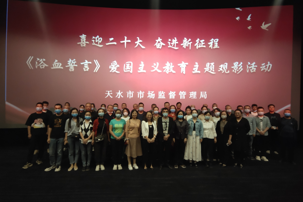 9月8日,天水市市场监管局开展爱国主义教育主题观影活动,组织市局机关和各直属单位100余名党员干部观看红色电影《浴血誓言》,教育引导全体党员干部铭记历史、缅怀先烈,弘扬伟大爱国精神,厚植爱党爱国情怀。