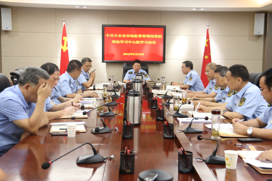 8月24日,市市场监管局党组书记、局长王宏玮主持召开党组理论学习中心组学习会议,认真学习习近平总书记重要讲话精神及中央和省、市有关文件精神,并对市场监管近期重点工作进行了安排部署。局领导班子成员、调研员,各直属单位及相关科室负责人参加会议。