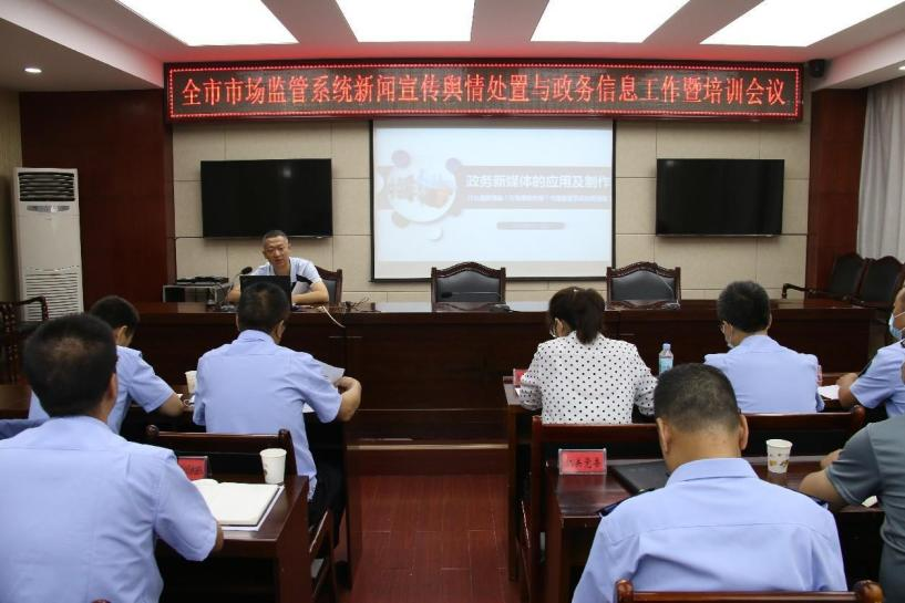 邀请省市场监管局宣信中心管磊同志围绕新媒体应用与制作及如何进行舆情处置进行了专题培训。邀请市政府办公室信息科科长王慧同志讲授了政务信息写作相关知识。会议还就进一步做好新闻宣传与舆情处置工作进行了交流座谈。