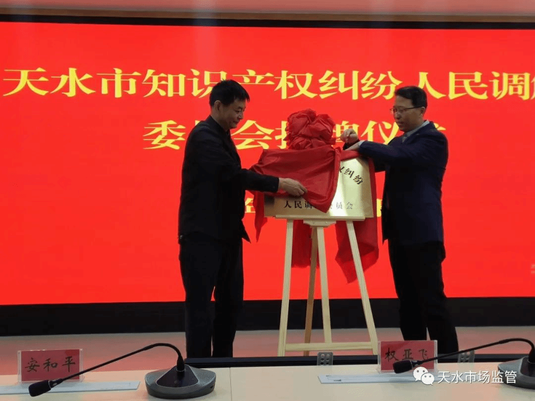 为进一步完善我市知识产权纠纷多元化解机制,快速、灵活解决知识产权纠纷,有效降低维权成本,构建部门协调、社会共治的知识产权大保护格局,11月22日,天水市知识产权纠纷人民调解委员会在市市场监督管理局挂牌成立。天水市市场监督管理局党组成员、副局长安和平,天水市司法局党组成员、副局长权亚飞出席揭牌仪式。