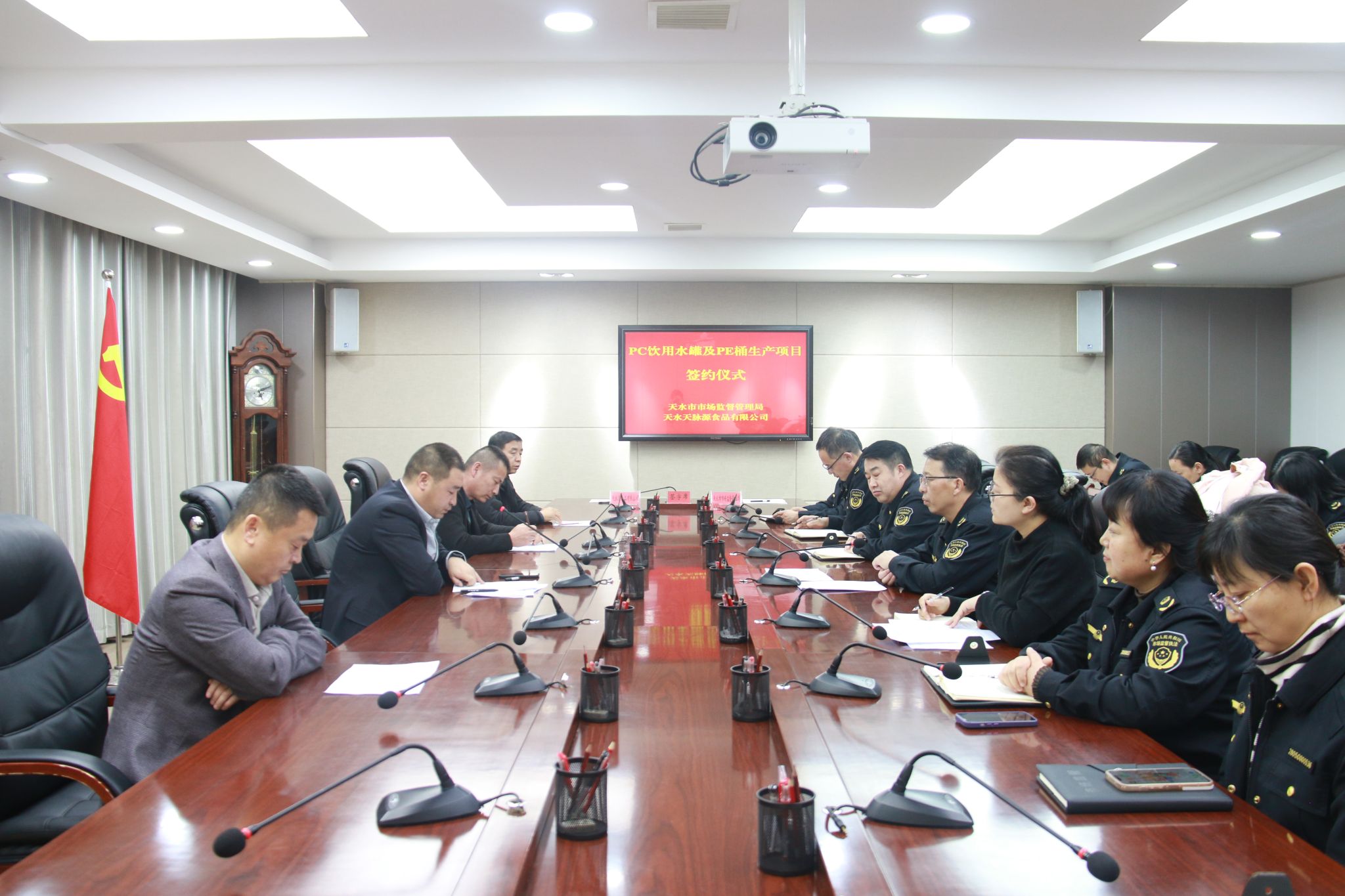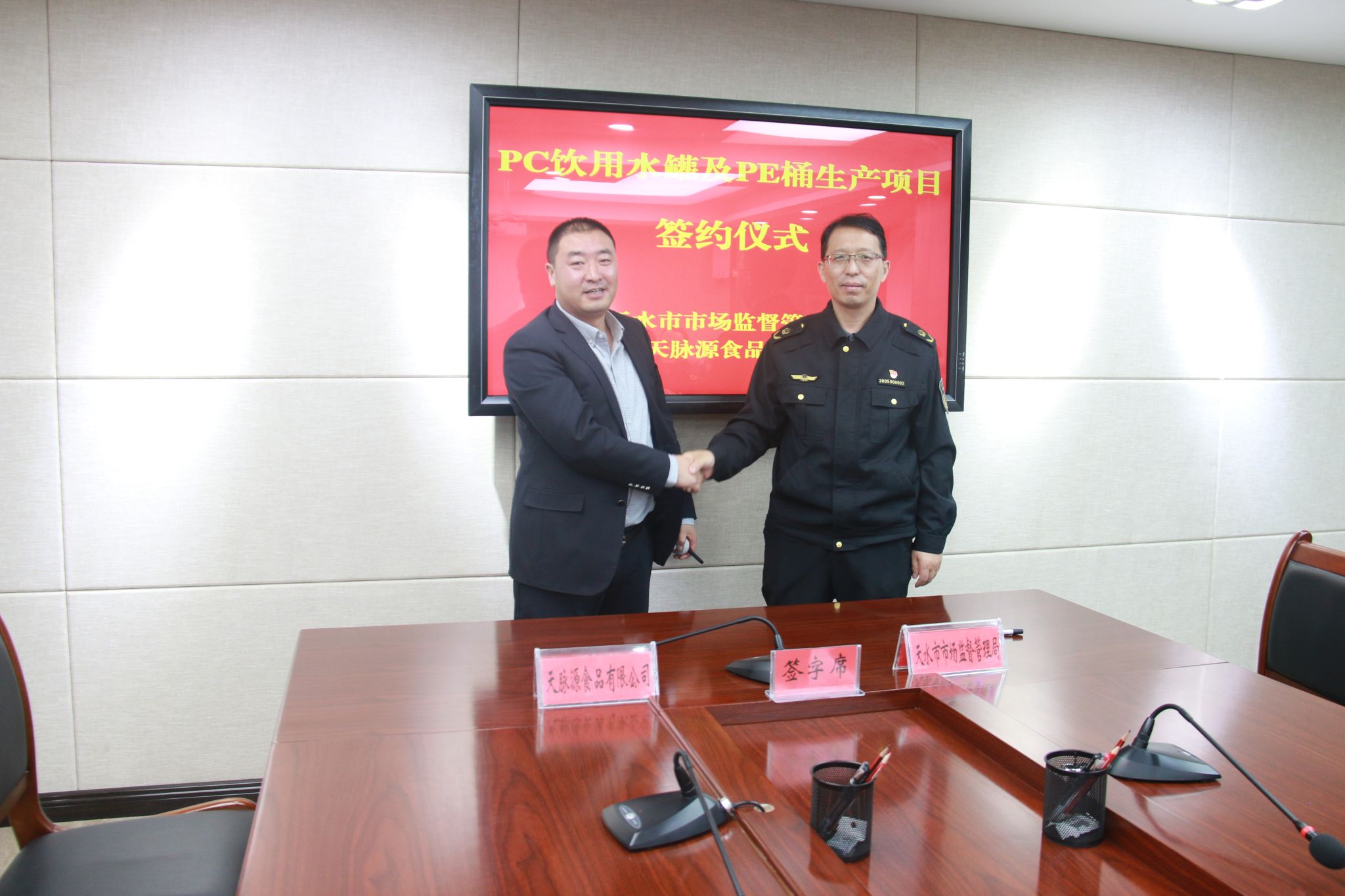 1月15日,天水市市场监督管理局与甘肃塑科塑料制品有限公司举行PC饮水罐及PE桶生产项目签约仪式。市局党组成员、副局长安和平出席并主持仪式,甘肃塑科塑料制品有限公司总经理杨凯、天水天脉源食品有限公司总经理陈继勋等出席,市局有关科室负责人及省质检东部分中心负责人参加签约仪式。