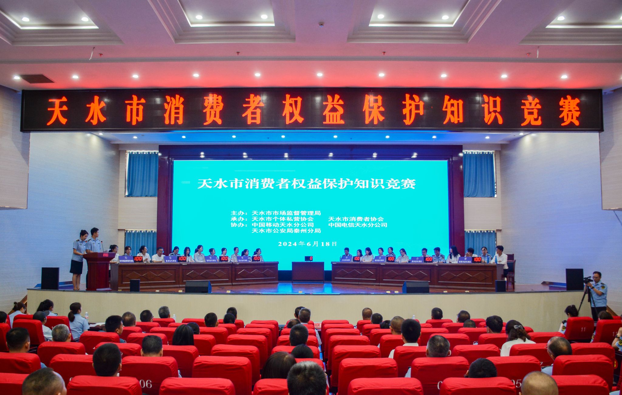 《中华人民共和国消费者权益保护法实施条例》将于2024年7月1日起施行。为引导消费者树立正确消费观念,依法维护自身合法权益,同时鼓励经营者依法诚信经营,共同营造放心消费环境。6月18日,天水市市场监管局、天水市个体私营协会、天水市消费者协会联合举办2024年天水市消费者权益保护知识竞赛。市市场监管局党组书记、局长董小明出席活动并为获奖单位颁奖,市文明办、市公安局、市商务局等单位受邀参加了此次活动。