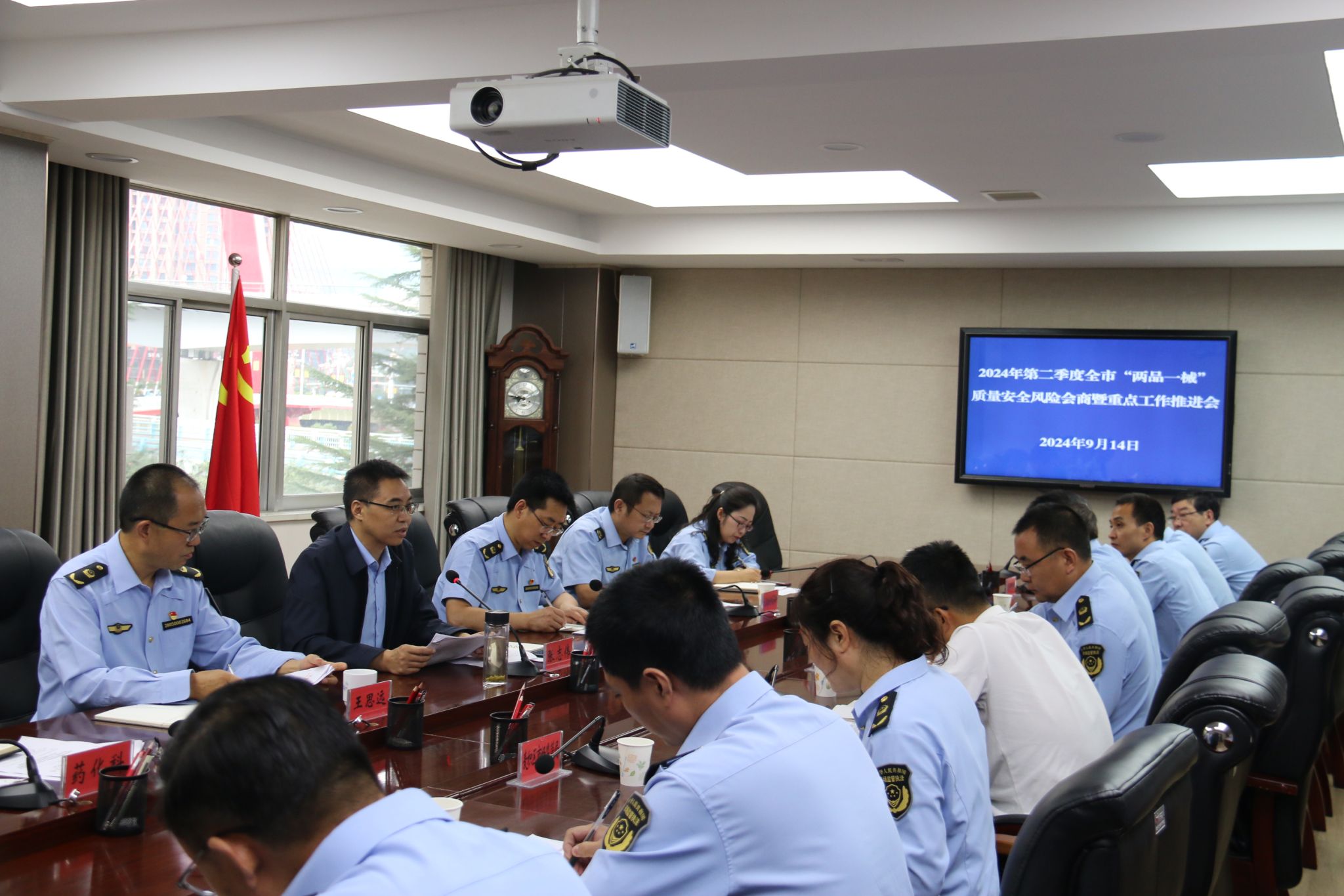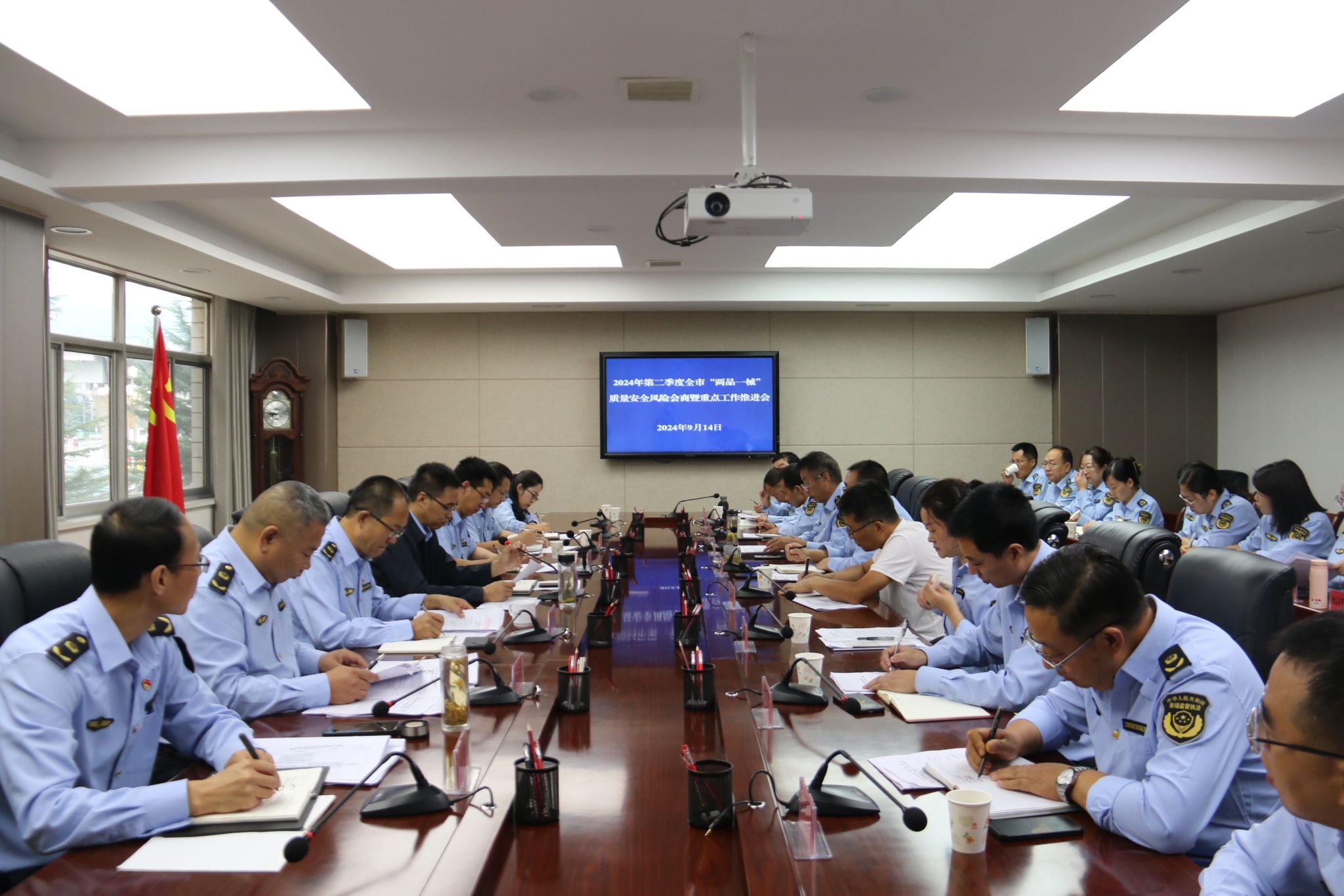 为深入贯彻落实全省药品安全调度暨药品安全巩固提升行动推进会议精神,靠实“两品一械”安全监管责任,全面防范化解“两品一械”风险隐患,9月14日,天水市市场监管局组织召开2024年第二季度“两品一械”质量安全风险会商暨药品安全形势分析会。市局党组成员、副局长张志伟出席会议并讲话,省药监局天水执法检查局、各县区市场监管局、开发区分局、市市场监管综合行政执法队、市药品不良反应监测中心等单位分管领导及工作人员,市局相关科室负责人共计30余人参加会议。
