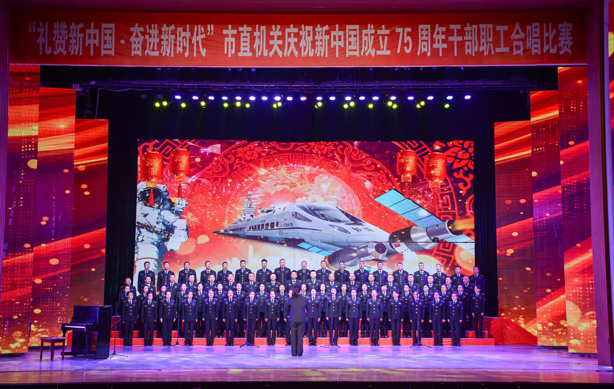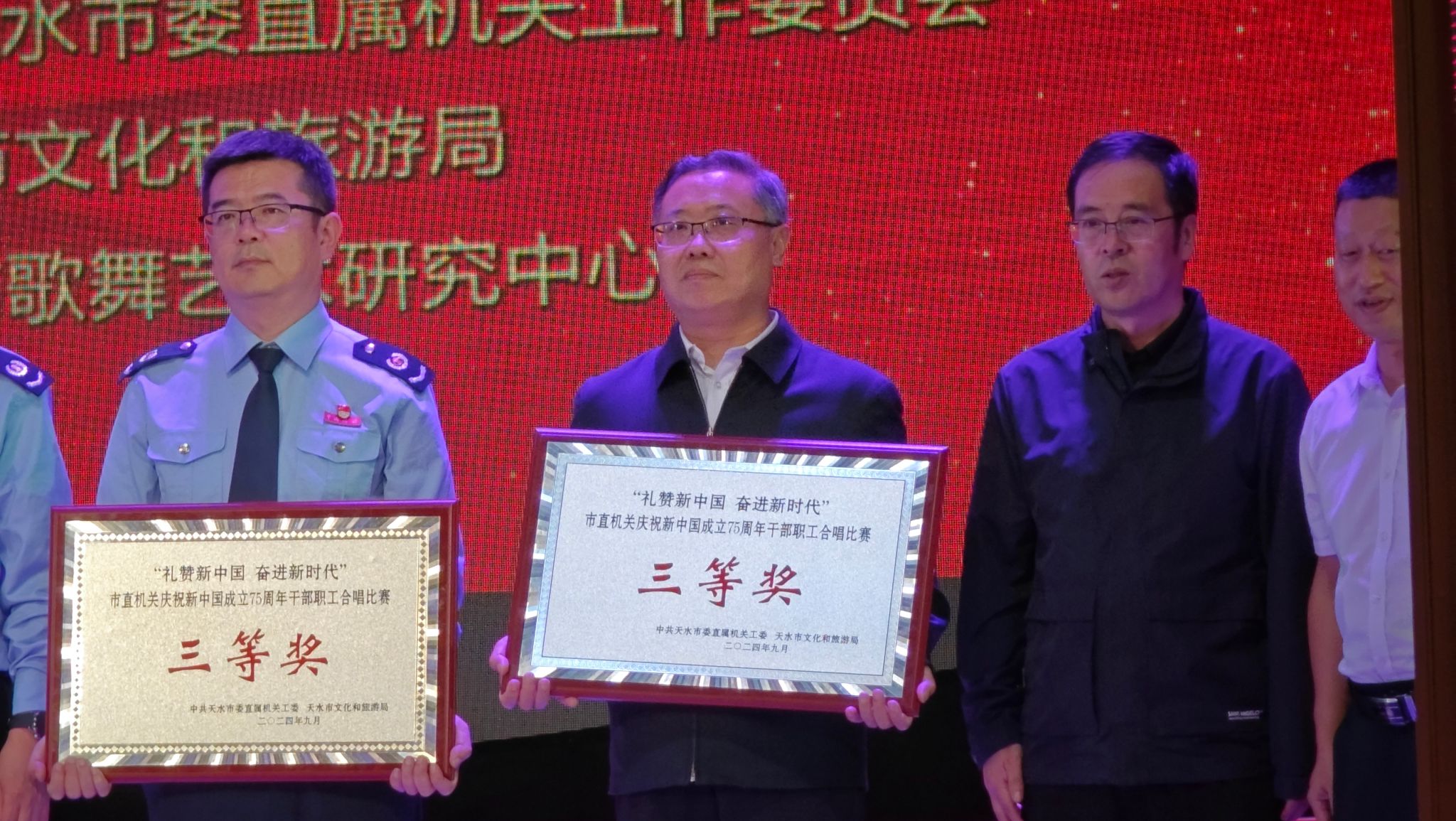 9月24日晚,“礼赞新中国 奋进新时代”市直机关庆祝新中国成立75周年干部职工合唱比赛在秦州剧院举行,经过激烈角逐,市市场监管局代表队凭借合唱歌曲《新时代的我们》荣获三等奖。