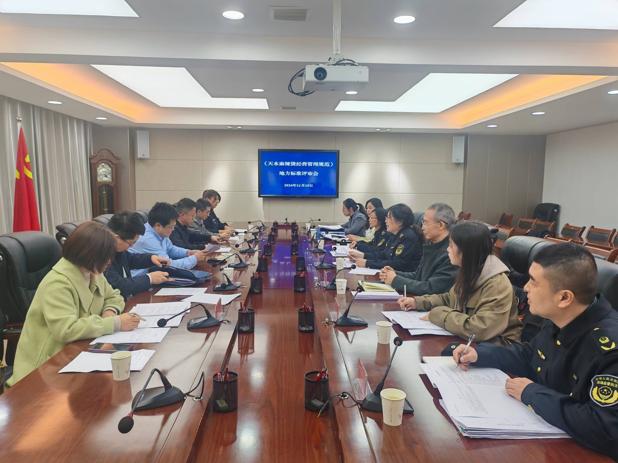 近日,天水市市场监督管理局组织召开地方标准评审会,邀请甘肃省市场监督管理局、甘肃省标准化研究院、甘肃工业职业技术学院、天水师范学院等单位的6名专家组成技术审查专家组,对《天水麻辣烫经营管理规范》地方标准进行了审查评审,省标准化研究院院长周英担任技术审查专家组组长,市市场监督管理局三级调研员李箭主持会议,市食品检验检测中心主任毛焕军、市局相关科室及市食检中心部分技术人员参加会议。