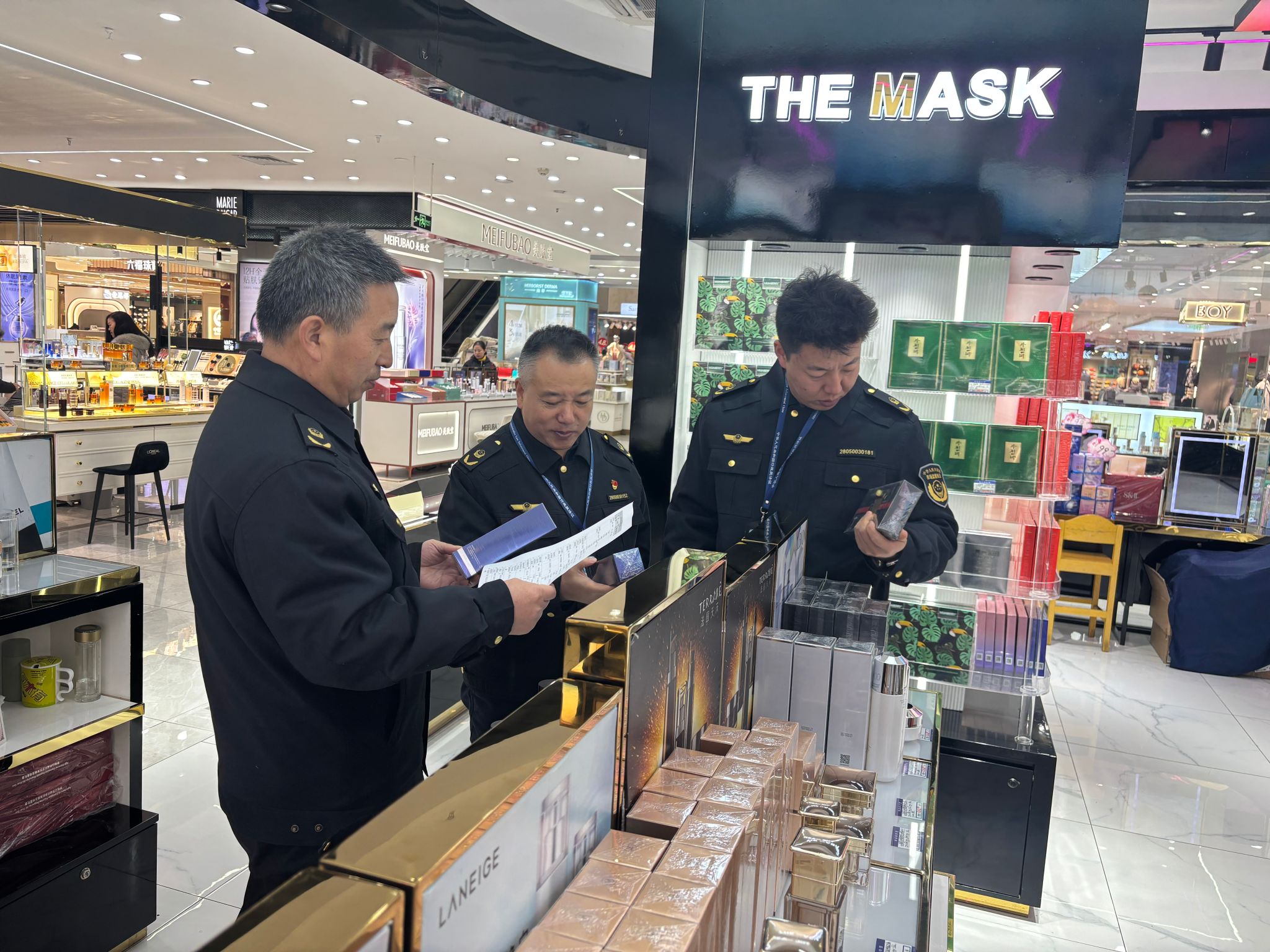 近日,国家药监局发布《关于15批次化妆品检出禁用原料的通告》(2024年第53号)(以下简称《通告》),要求各省(区、市)药品监督管理部门对相关违法产品进行追根溯源并依法查处。天水市市场监管综合行政执法队第一时间组织精干执法力量深入秦州、麦积两区开展不合格化妆品排查行动,切实保障人民群众用妆安全。