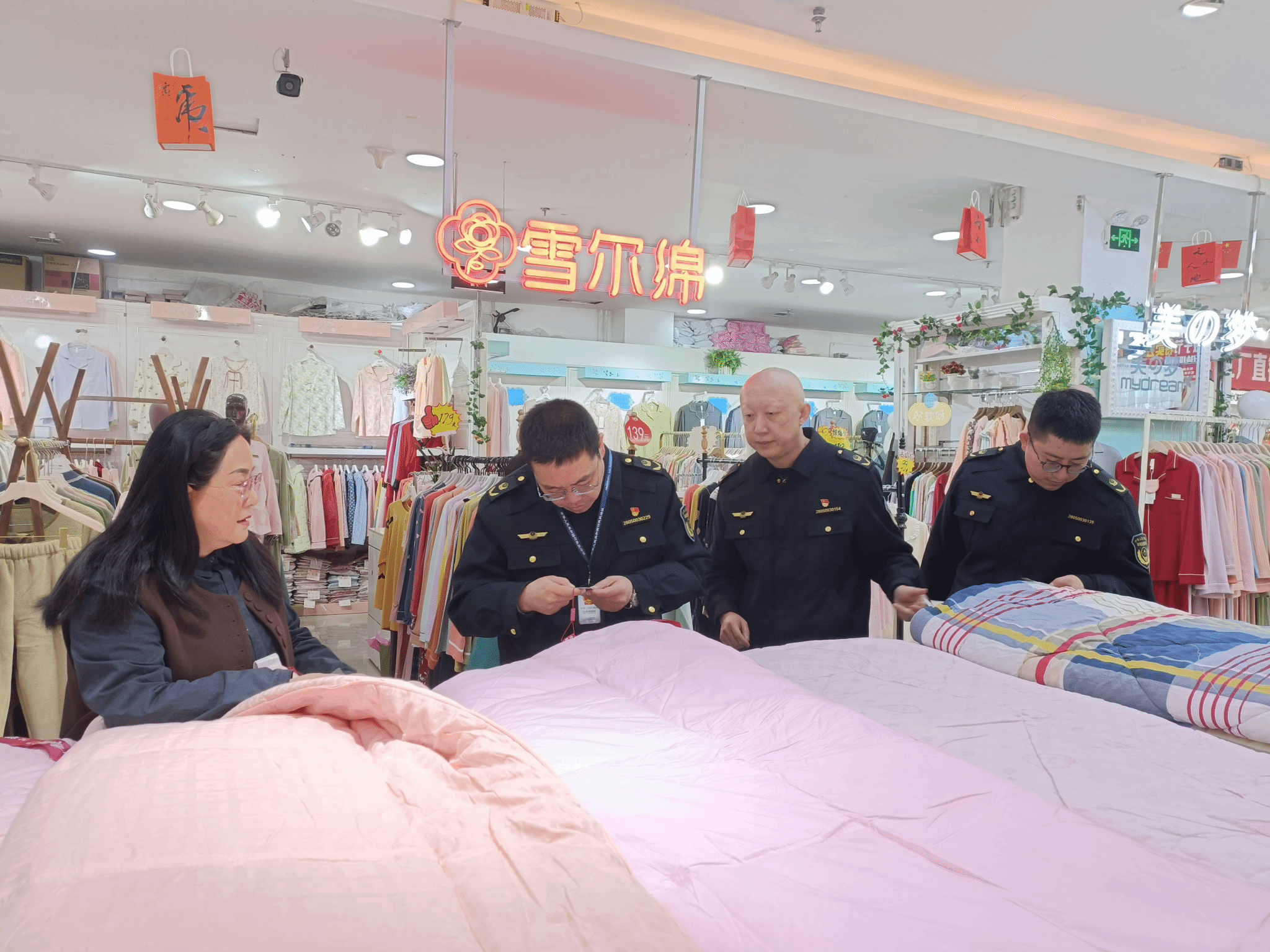 为进一步加强羊绒衫、羽绒服、羽绒被、蚕丝被等纺织品市场监管,切实维护消费者“穿在身上的安全”,根据《甘肃省市场监管局办公室关于开展羊绒衫、羽绒服等纺织品假冒伪劣突出问题专项整治的通知》和《天水市市场监管局办公室关于开展羊绒衫、羽绒服等纺织品假冒伪劣突出问题专项整治的通知》要求,从今年1月份开始,天水市市场监管综合行政执法队持续开展了羊绒衫、羽绒服等纺织品假冒伪劣突出问题专项检查。